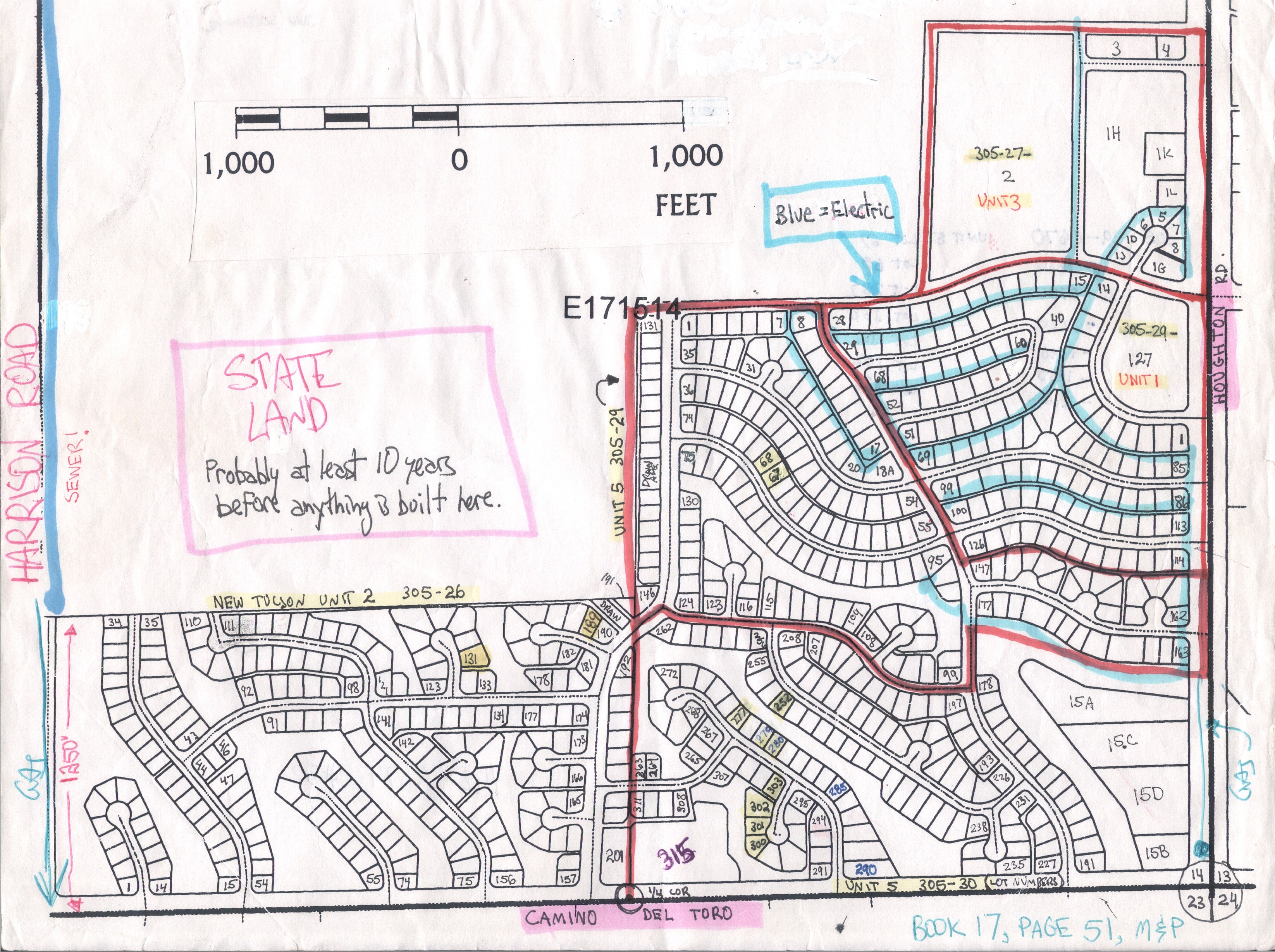 Units 2 & 5. Unit one in the NE corner was developed in the 60’s, there’s a baptist church on the large corner lot. Below Unit 1 is a part of Unit 5 that was developed too, they opted out of the Unit 5 HOA. Lots in yellow are mine.